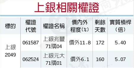 目前上銀股價本益比約24倍,略低于歷史12~40倍區間平均值,在新產品陸續出貨且訂單回流速度優于預期,投資人可適時利用權證進可攻、退可守的特性參與看好的個股。