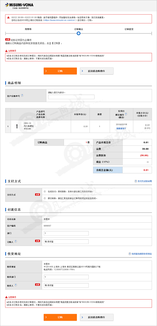米思米官網(wǎng)商品交易購買的主要流程: