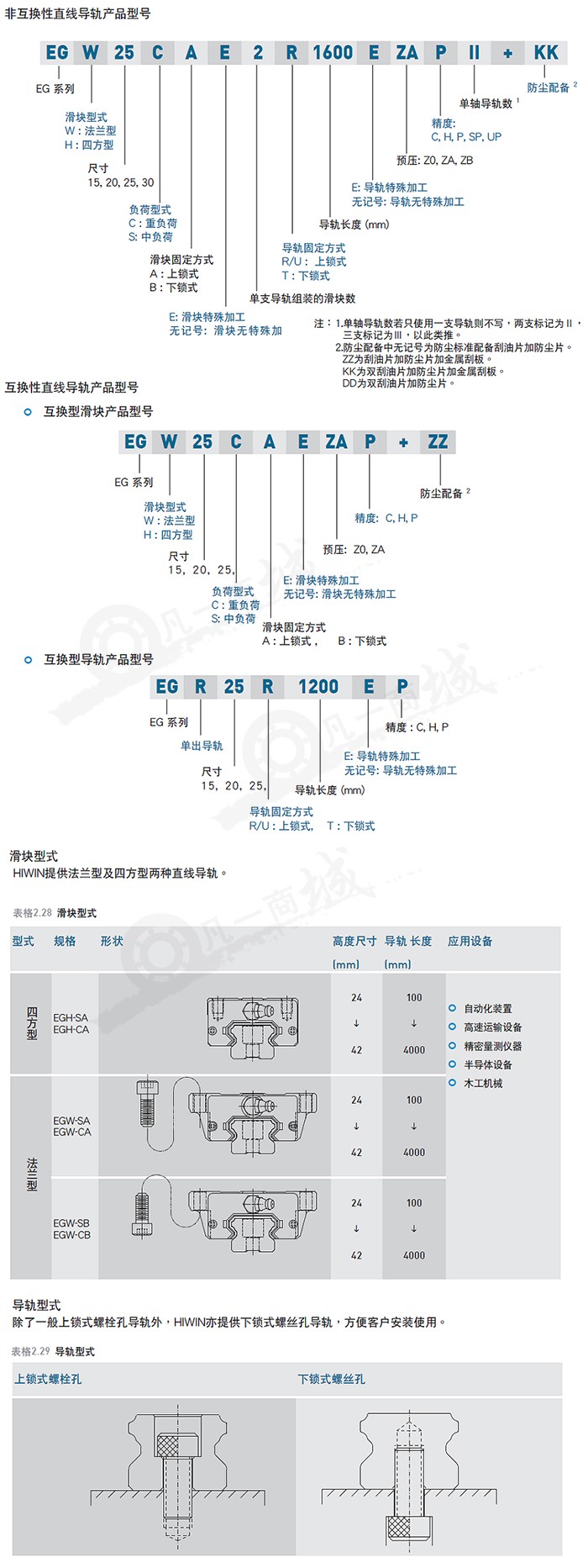 EG系列使用四列鋼珠承受負荷設計,使其具備高剛性、高負荷的特性,同時具備四方向等負載特色、及自動調(diào)心的功能, 可吸收安裝面的裝配誤差,得到高精度的訴求。 加上降低組合高度及縮短滑塊長度,非常適合高速自動化產(chǎn)業(yè)機械及空間要求的小型設備使用。